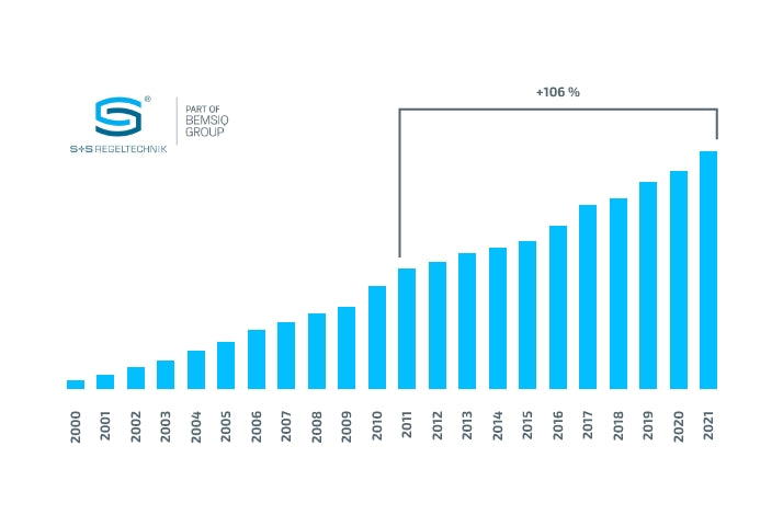 S+S a emménagé en 2021 dans un nouveau bâtiment équipé d'un système de gestion de bâtiment ultramoderne, d'une isolation thermique de pointe et d'un éclairage exclusivement à LED. Grâce à une domotique ultramoderne (Modbus/KNX) pour la régulation de la climatisation et la commande des stores, ainsi qu'à une pompe à chaleur d'un rendement supérieur à 99%, nous contribuons activement à une utilisation durable de l'énergie. Grâce à ces mesures, nous sommes précurseurs dans l'exploitation de bâtiments comparables et nous sommes 20% en dessous de la limite stricte des besoins en énergie primaire selon le décret allemand sur les économies d'énergie (EnEV).