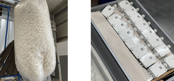 S+S mise à 100% sur des matériaux d'emballage écologiques et réutilisables. Ainsi, nous utilisons exclusivement des cartons d'expédition recyclés ainsi que des matériaux de remplissage biodégradables. En utilisant des chips d'amidon de maïs à la place de chips en plastique pour l'emballage, nous réduisons 900 kg de plastique par an. De plus, nous faisons partie d'un système d'emballage roulant : une grande partie de nos fournisseurs livrent leurs produits dans des grandes caisses réutilisables, au lieu d'emballages individuels nuisibles au climat.