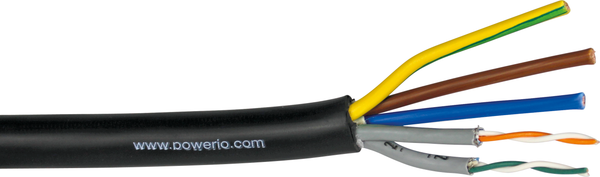 - Câble hybride pour connecter les boîtiers powerIO® Puissance : 3x 2,50 mm² Données : 2x (2x 0,34 mm²), blindé Vendu au mètre, quantité minimum de commande 10 m / 33 ft