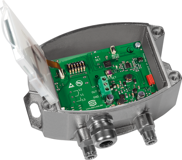 Les sondes de pression disposent d'une touche pour le réglage manuel du zéro (calibrage automatique du zéro en option) ainsi que d'un potentiomètre d'offset pour le réglage du point de commutation et pour la correction de la valeur finale. Les sondes sont calibrées en usine, un réglage fin en fonction de l'environnement peut être effectué par un spécialiste.