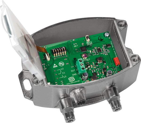 Les sondes de pression disposent d'une touche pour le réglage manuel du zéro (calibrage automatique du zéro en option) ainsi que d'un potentiomètre d'offset pour le réglage du point de commutation et pour la correction de la valeur finale. Les sondes sont calibrées en usine, un réglage fin en fonction de l'environnement peut être effectué par un spécialiste.