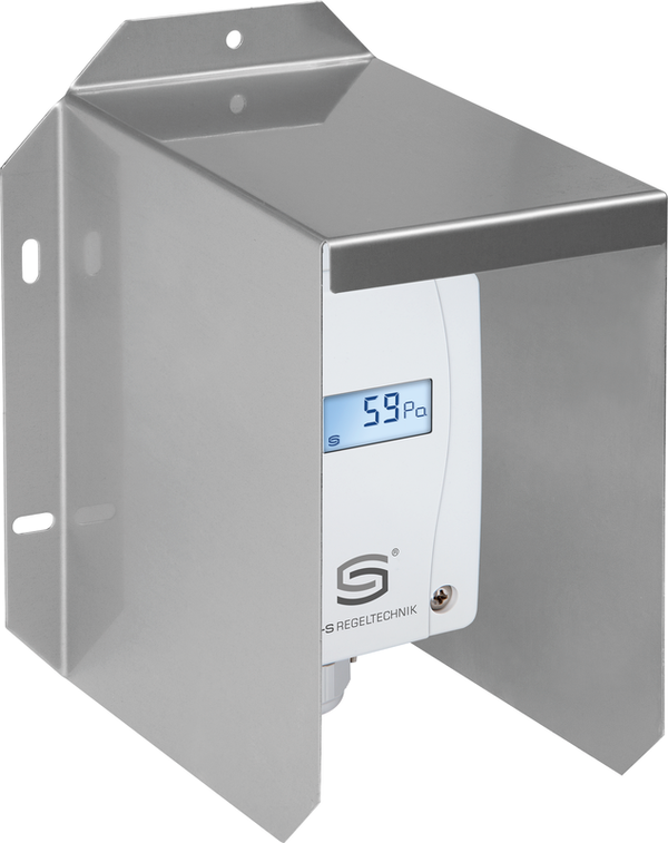 boîtier en plastique, pour la mesure de la pression différentielle (max. -500...500 Pa) dans l'air. Avec kit de raccordement ASD-06 (2 m de tuyau de raccordement,