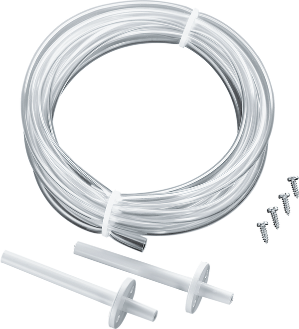 kit de raccordement composé de 2 raccords (droits) en plastique ABS, 2 m de tuyau en PVC souple et 4 vis à tôle