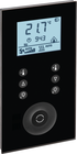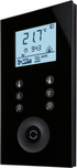 Pour la commande et la configuration sur place, six touches de fonction librement attribuables sont disponibles sur la façade en verre de l'appareil. Un générateur d'impulsions rotatif encastré avec une touche d'entrée centrale permet de modifier ou de paramétrer manuellement les réglages sur place. Les fonctions souhaitées (comme "Lumière allumée") et les valeurs d'affichage peuvent être activées facilement par un capteur de proximité lorsque l'on entre dans la pièce.