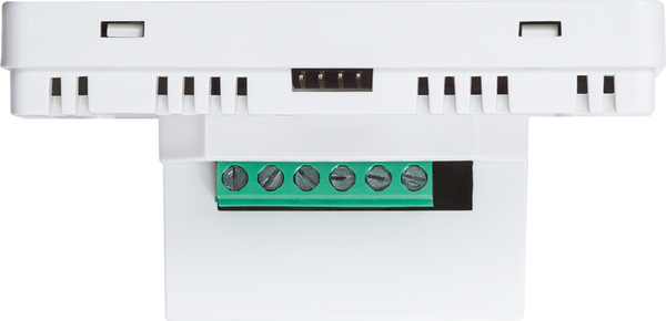 Outre le capteur de température intégré, il est possible de raccorder deux capteurs de température externes (NTC10K) ou deux capteurs analogiques (0-10 V). Des éléments de mesure de l'humidité relative et du CO2 sont également disponibles. Les appareils sont utilisés dans la technique de climatisation des locaux, y compris les ventilo-convecteurs, les plafonds réfrigérants et les systèmes de chauffage/refroidissement. Le montage mural s'effectue sur des boîtes d'encastrement standard. Les appareils sont disponibles au choix avec une interface de communication pour Modbus ou BACnet ainsi que dans diverses variantes de type (voir la clé de numérotation).