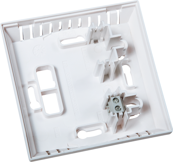 Sonde de température ambiante THERMASGARD® - LE CAPTEUR DE TEMPÉRATURE RTF 1 avec sortie passive, dans un boîtier esthétique en plastique avec couvercle à encliqueter, partie inférieure avec fixation à 4 trous, pour le montage sur des boîtes d'encastrement installées verticalement ou horizontalement, avec point destiné à la rupture pour le raccordement en saillie, ou avec un boîtier robuste en acier inoxydable (parties supérieure et inférieure en acier inoxydable, couvercle vissé) pour des applications à l'épreuve du vandalisme, par exemple dans les écoles, les casernes et les bâtiments publics. La sonde de température résidentielle sert à détecter/afficher la température dans des locaux fermés et secs, dans des appartements, des cinémas, des supermarchés, des entrepôts, des bureaux et des locaux commerciaux.