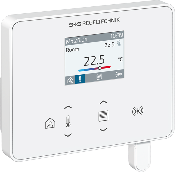 L'interface de communication Modbus ou W-Modbus permet de modifier et de surveiller à tout moment les paramètres climatiques sur le régulateur via la GTC. De plus, les fonctions de protection solaire (brise-soleil orientables, stores vénitiens) ou d'éclairage (avec fonction de variation) peuvent être commandées via le bus. L'affichage optique est assuré par un écran TFT 2", la commande par des touches capacitives (Touchkeys).