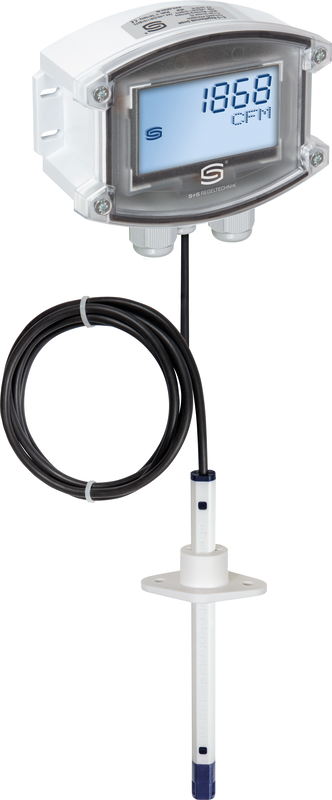 Sonde de débit d'air pendulaire étalonnable RHEASGARD® PLGFV - Modbus avec connexion Modbus, boîtier en plastique résistant aux chocs avec vis à fermeture rapide, avec presse-étoupe (en option connecteur M12 selon DIN EN 61076-2-101), au choix avec / sans écran, avec sonde de gaine externe y compris bride de montage, pour la saisie de la vitesse d'écoulement (0,1...20 m/s). Les grandeurs caractéristiques suivantes peuvent être interrogées via le Modbus : Vitesse d'écoulement et débit volumétrique (calculé).