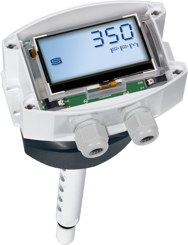 Sonde de canal sans entretien AERASGARD® - LE CAPTEUR DE TEMPÉRATURE KTM - CO2 - SD/ KFTM - CO2 - W/ KFTM - CO2 - Wavec sortie active, étalonnage automatique (réglage fixe), dans un boîtier plastique résistant aux chocs avec vis à fermeture rapide, pour déterminer la teneur en CO2 de l'air (0...2000 ppm / 0...5000 ppm) et la température (-35...+80 °C). Le convertisseur de mesure convertit les grandeurs mesurées en un signal normalisé de 0-10 V.
