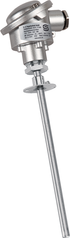 Sonde à résistance/sonde de température des fumées THERMASGARD® - MESURE DE LA TEMPÉRATURE RGTF 1 avec sortie passive, au choix Presse-étoupe ou connecteur M12 selon DIN EN 61076-2-101, avec tête de raccordement en aluminium et gaine de protection droite, bride de montage incluse.